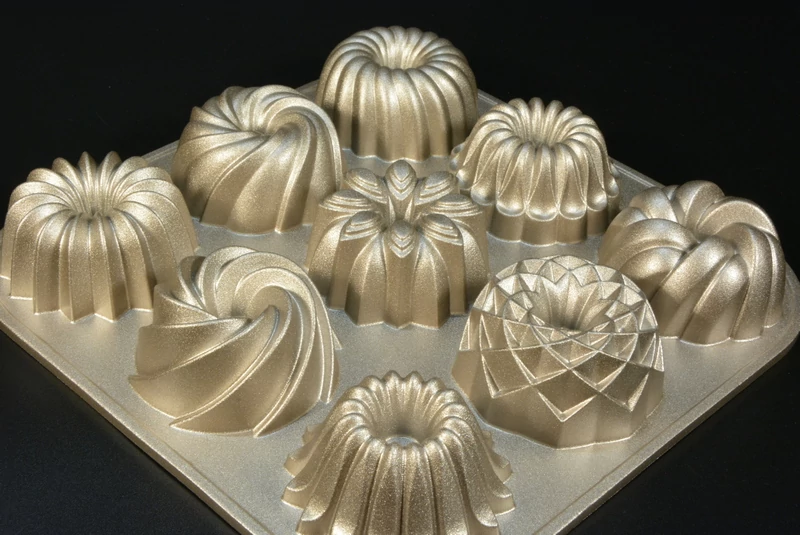 | Mini kuglóf sütőforma 9 különböző mintával, amely látványos, egyedi süteményeket készít egyetlen sütéssel – tapadásmentes bevonattal a könnyű kivételért. | |