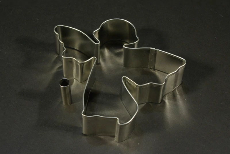 - Kiszúró formához tartozik egy kerek lyukasztó kiszúró ami lehetővé teszi, a formába lyuk kivágását ezzel fenyőfára felakasztható angyal mézecskalácsok készülhetnek