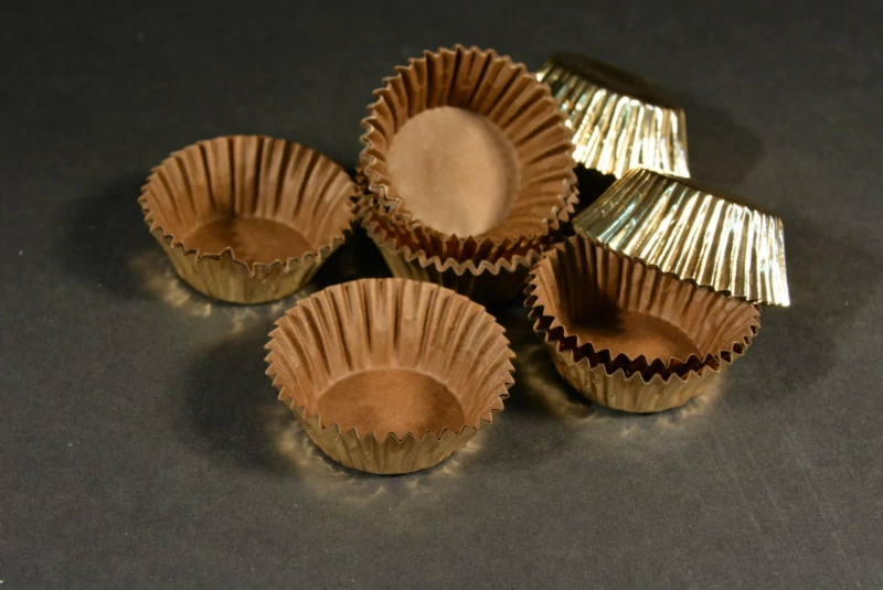 Kívül arany belül barna, Prémium bonbon kapszli higiénikus, elegáns és stabil tálaláshoz – bonbonhoz, trüffelhez és aprósüteményekhez. |