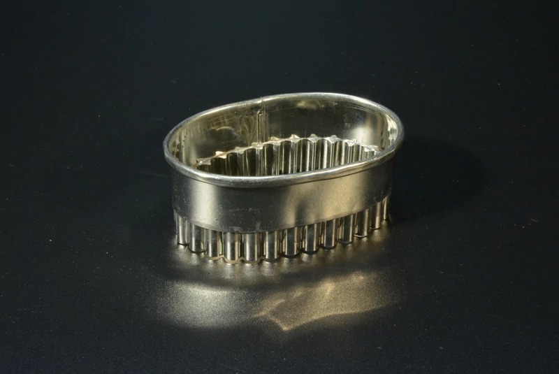 | Hullámos szélű, ovális kiszúró forma ónozott lemezből, amely tökéletes választás sütik, mézeskalácsok és tésztaformák készítéséhez otthon és professzionális konyhákban is. | |