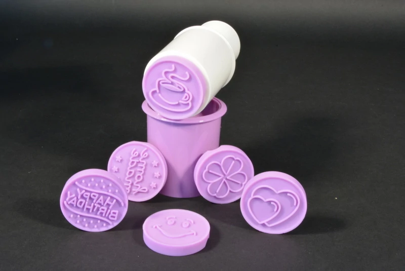 6 különböző minta – szív, lóhere, mosolygós arc, kávéscsésze, „Home Made”, „Happy Birthday”.